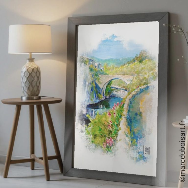 "Labeaume, Ardèche" / Acrylique sur toile cartonnée 35x50cm.